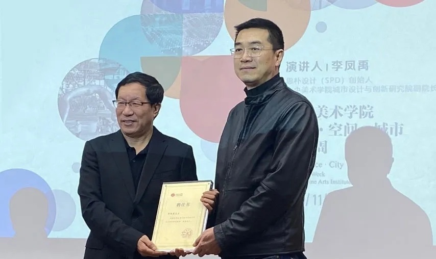 会上,四川美术学院领导为李凤禹先生举行了颁发聘任川美公共艺术学院客座教授证书的仪式,未来李凤禹先生将与川美师生在国内外的公共艺术空间设计方面开展更多学术交流和协同创新。