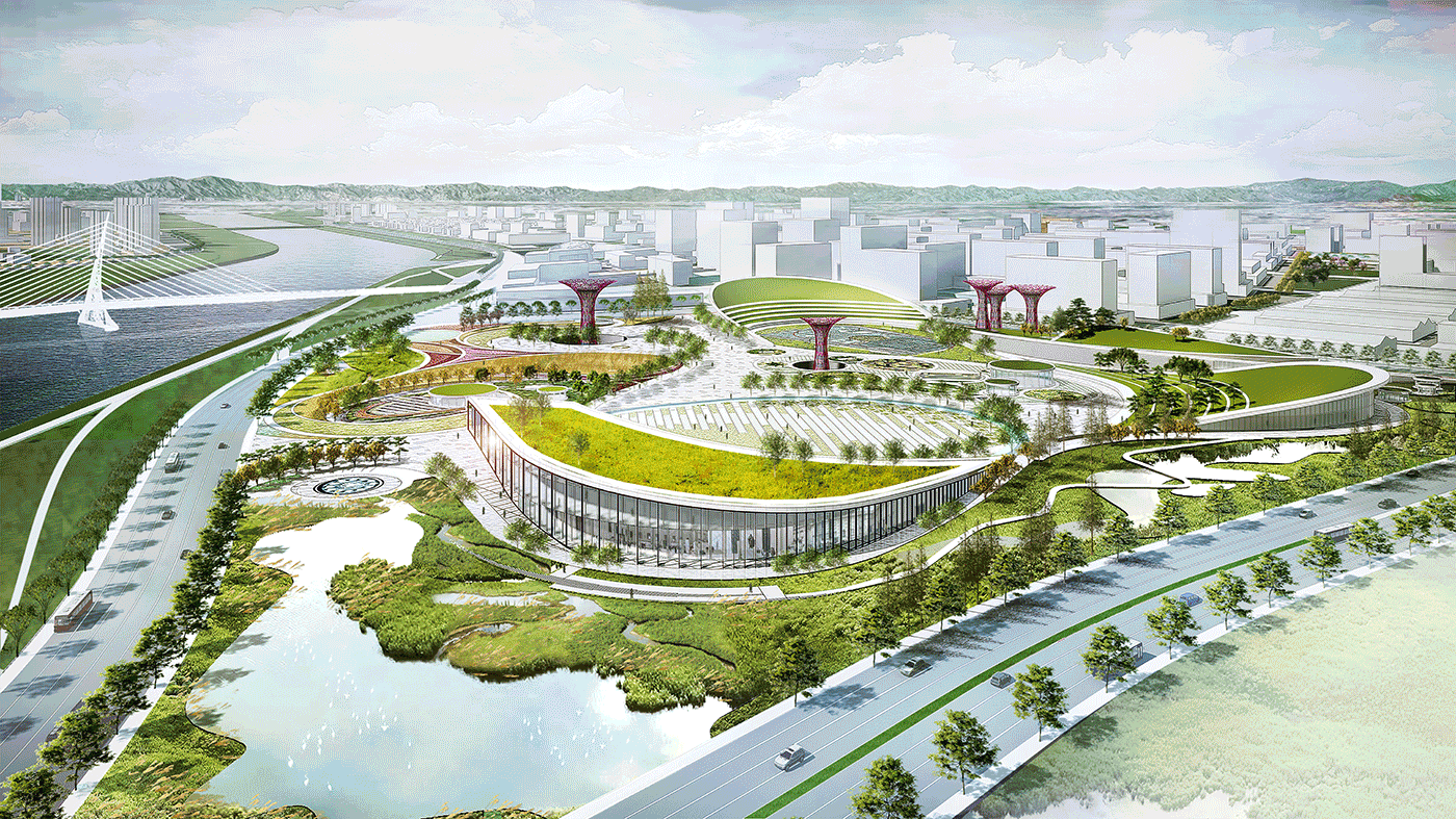 思朴实践项目中的减河北污水处理厂位于北京通州副中心新城,将污水处理、初期雨水处理、再生水回用、污泥处理、沼气发电、污水源热泵等多项功能的综合污水处理厂放入地下;地上规划为结合生态保育、智慧展示、科普教育、文化体育等多项功能的复合高品质公共空间。污水处理厂华丽“转身”后成为城市资源循环利用、构建生态共生的资源循环体,市政设施兼顾城市公共活动的综合体。