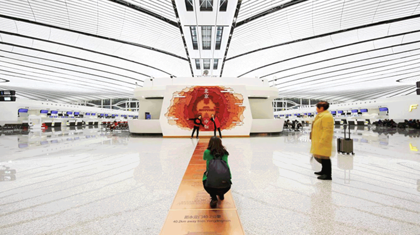 北京大兴国际机场,央美以机场的大堂、5个指廊、户外庭院为载体,组织国内外艺术家进行公共艺术设计,壁画、雕塑、交互艺术、装置艺术等多种艺术形式,实现功能和人流活动的有机结合,将单调的交通空间塑造成为充满艺术价值和人文关怀的体验场所,展现新历史时期首都新机场作为新国门的历史担当和国家形象。